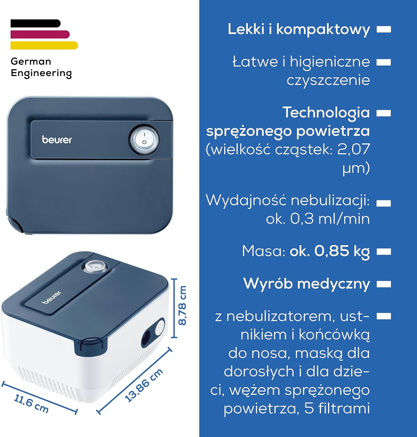 Beurer IH 16 Inhalator Pneumatyczno-Tłokowy – Kompaktowy, Dla Dzieci i Dorosłych, Skuteczna Terapia Dróg Oddechowych