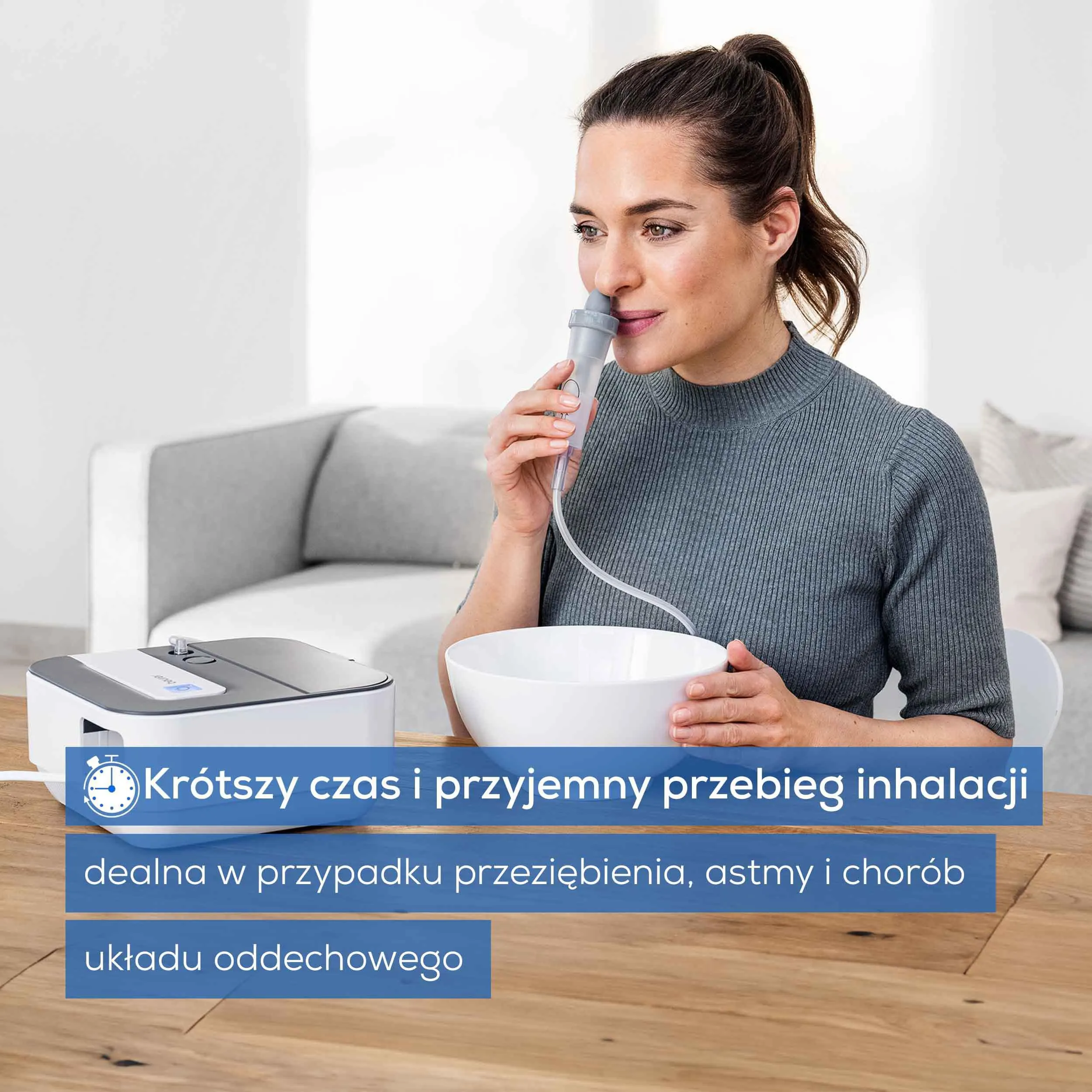 - Kompatybilność z lekami inhalacyjnymi – skuteczne leczenie górnych i dolnych dróg oddechowych