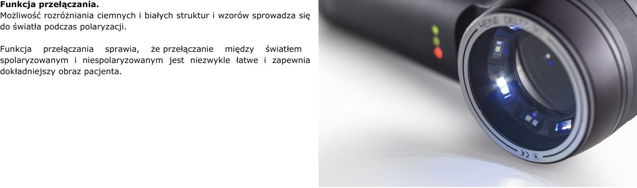 - Funkcja przełączania pomiędzy światłem spolaryzowanym a niespolaryzowanym (jednym przyciskiem).