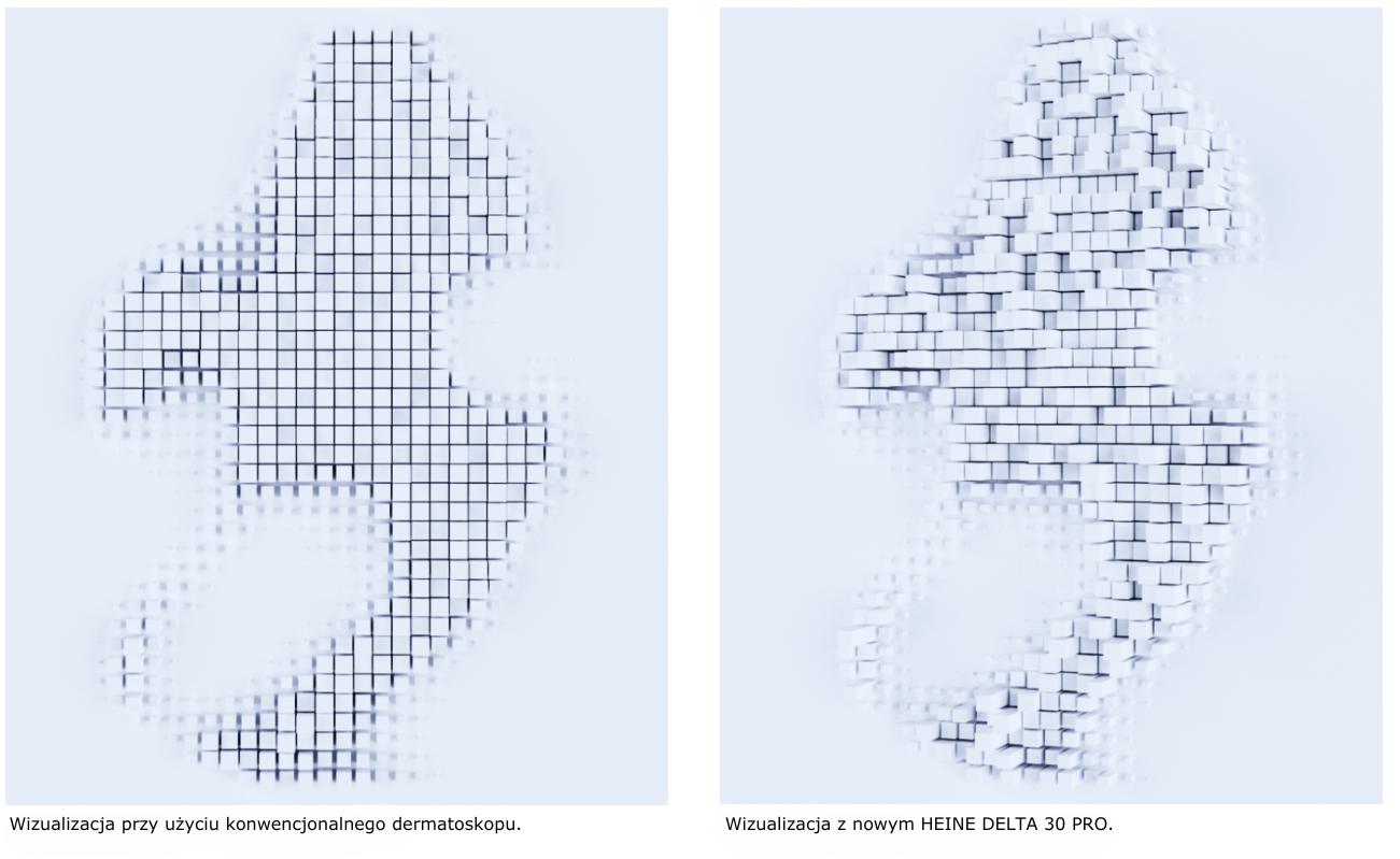 Dlatego przearanżowaliśmy LEDHQ w nowym HEINE DELTA 30 PRO. Dzięki przestawieniu diod LED światło dociera do głębszych warstw skóry – dając niezwykle żywe, przestrzenne wrażenie zmian chorobowych, podobne do obrazu 3D.