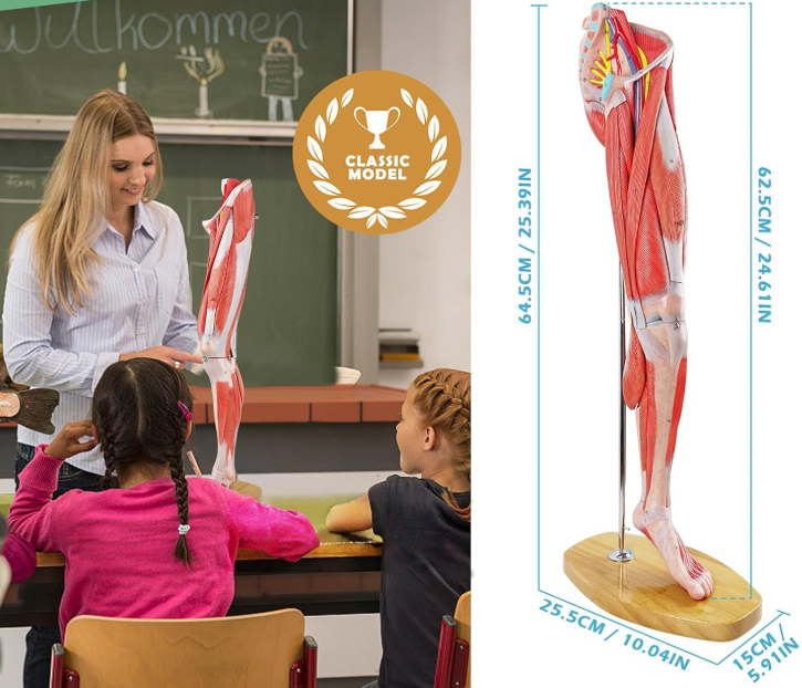 Model doskonale łączy teorię z praktyką, ułatwiając zrozumienie budowy oraz funkcji mięśni nóg.