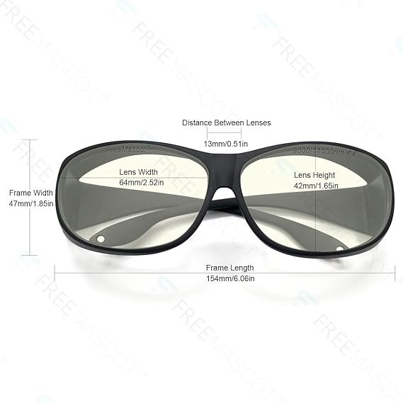 Okulary ochronne laserowe FREEMASCOT OD 6+ 9000–11000 nm – profesjonalne okulary CO₂ 10,6 µm, zgodne z normą EN207, 95% transmisji światła widzialnego, ochrona przed laserem 10600 nm