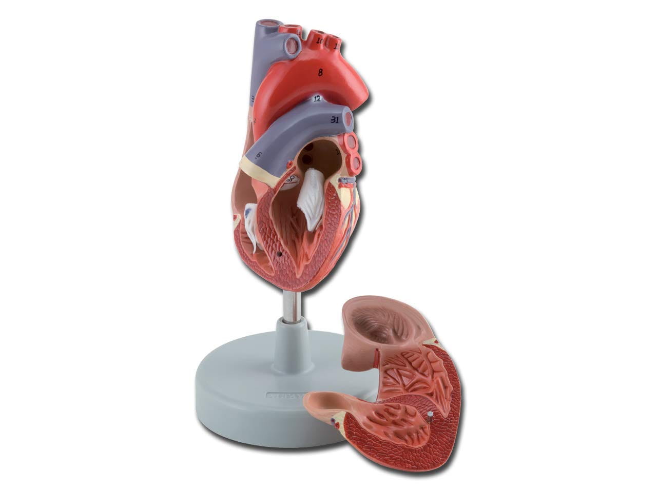 - Dwuczęściowa konstrukcja – zdejmowana przednia ściana ukazuje wszystkie kluczowe struktury serca,