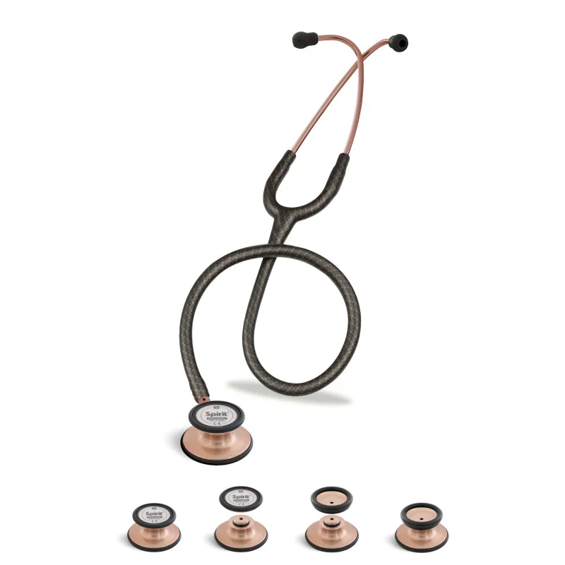 Stetoskop Spirit CK-S601PF Carbon Fiber Copper Finish to profesjonalny stetoskop internistyczno-pediatryczny marki Spirit Medical, wyróżniający się wysoką jakością akustyczną oraz eleganckim, limitowanym wykończeniem Copper Finish. Model ten przeznaczony jest do precyzyjnego osłuchiwania dorosłych, dzieci i niemowląt.