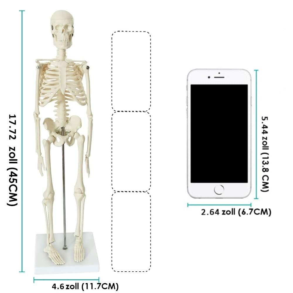Kompaktowy model anatomiczny szkieletu ludzkiego 45 cm to świetna pomoc dydaktyczna dla szkół, studentów, gabinetów lekarskich oraz wszystkich, którzy chcą w przystępny sposób poznać podstawy anatomii człowieka. Wykonany w skali 1:4, odwzorowuje najważniejsze elementy budowy szkieletu osoby dorosłej, uwzględniając charakterystyczne szczegóły takie jak szwy czaszki, zagłębienia i proporcje kości.