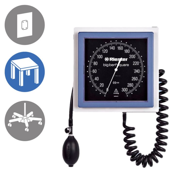 Riester Big Ben biurkowy (kwadratowy) to profesjonalny, naramienny ciśnieniomierz zegarowy zaprojektowany z myślą o klinicznych warunkach pracy – gabinetach lekarskich, pokojach zabiegowych oraz oddziałach szpitalnych. Wyposażony w trzymetrowy przewód łączący mankiet z manometrem, zapewnia bardzo wygodny pomiar nawet wtedy, gdy pacjent znajduje się w pewnym oddaleniu od stanowiska lekarskiego.