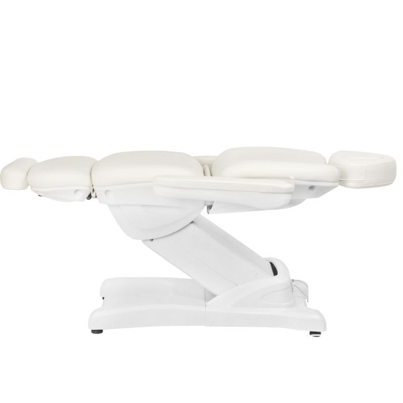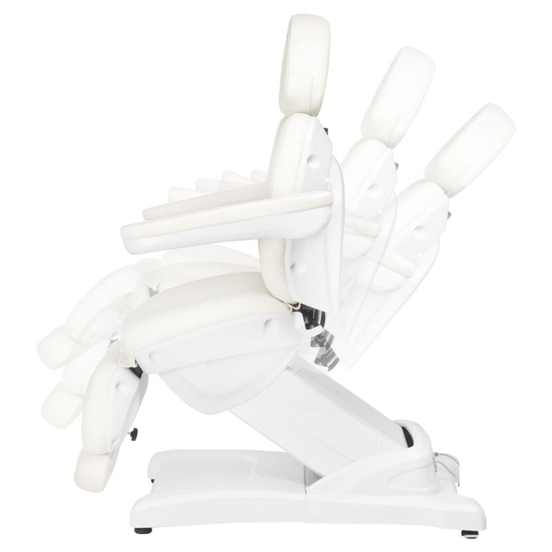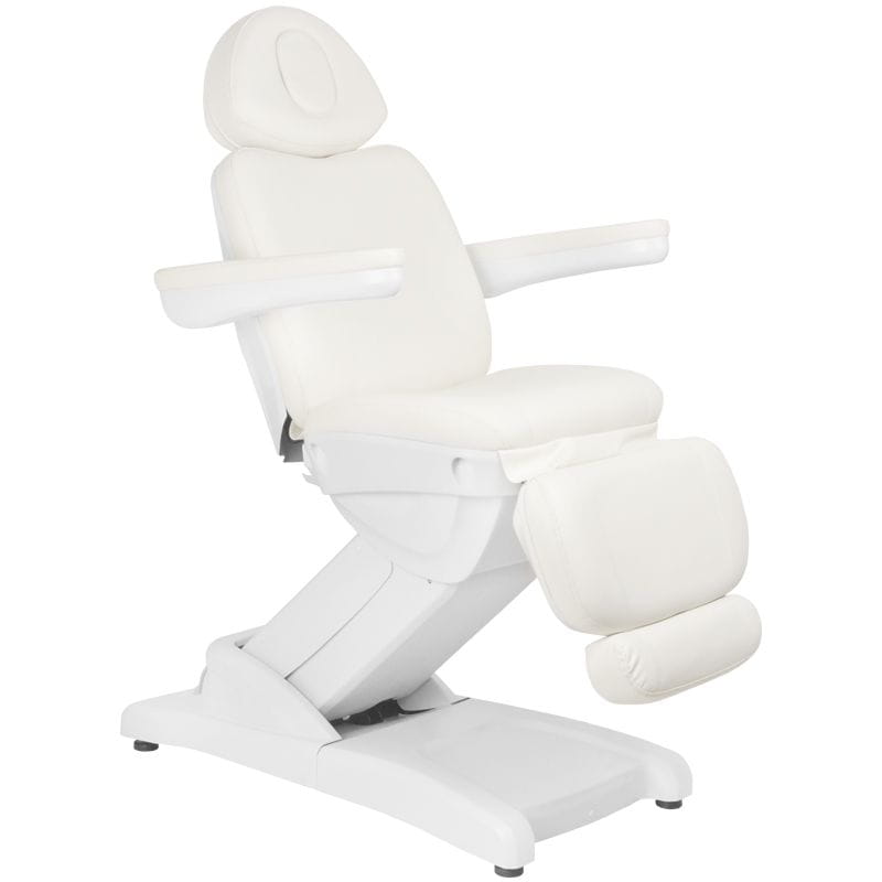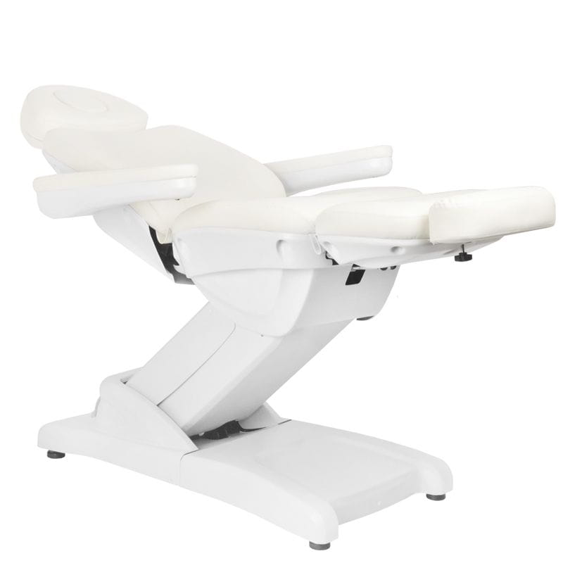 Fotel kosmetyczny elektryczny idealnie nadający się do gabinetów kosmetycznych oraz salonów SPA. Dzięki niezależnym silnikom umożliwia regulację fotela w 4 płaszczyznachza pomocą pilota dając możliwość przeprowadzenia zabiegów na twarz oraz ciało. Używając pilota możemy dostosowac wysokość fotela, nachylenie oparcia i podnóżków a także ustawić siedzisko w pozycji kołyski. Niewielkie gabaryty fotela idealnie wkomponują sie w małym salonie.