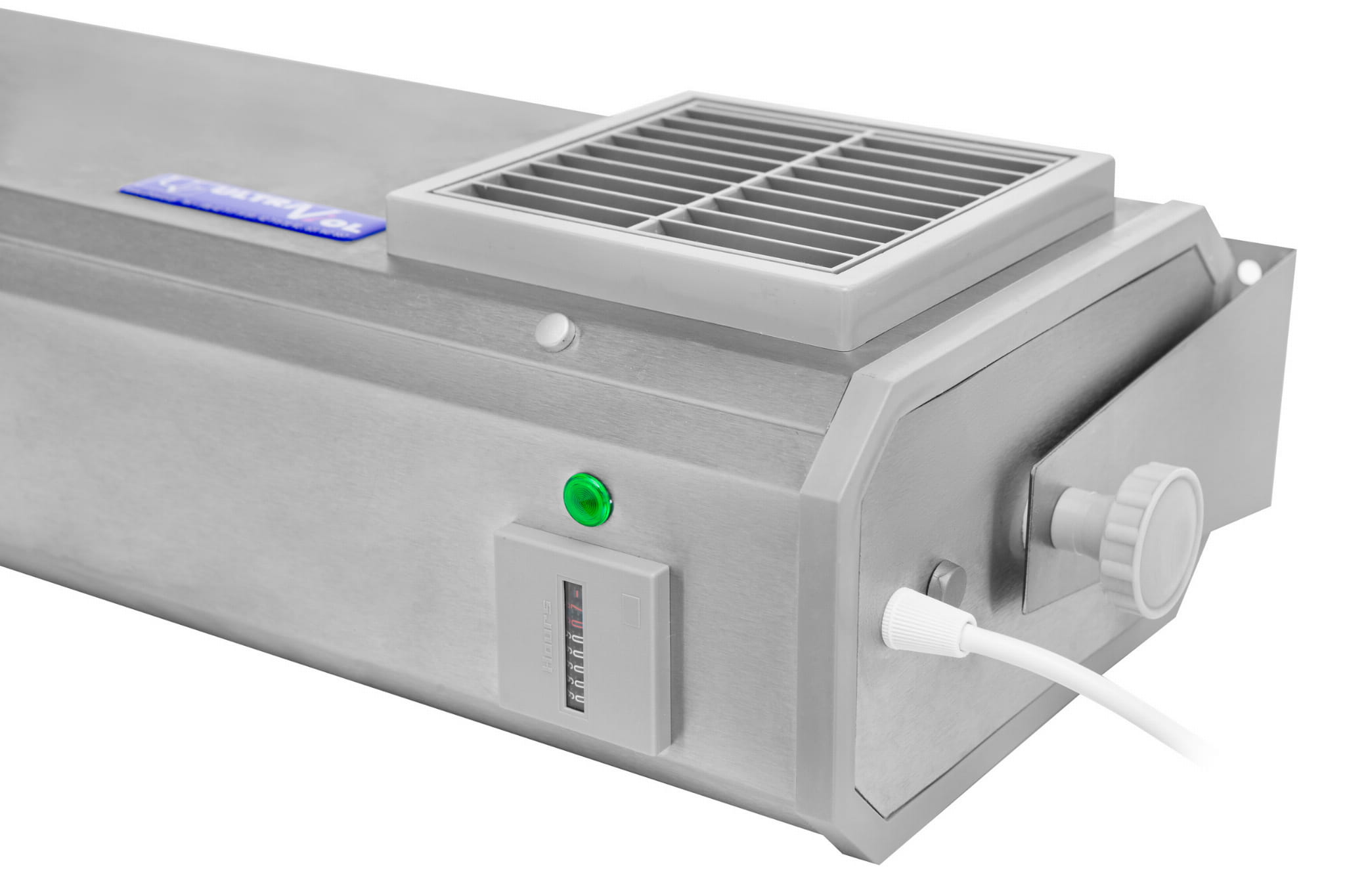 - rodzaj obudowy: blacha kwasoodporna, łatwość dezynfekcji i mycia lampy, szczelność, pełne bezpieczeństwo personelu, prostota wymiany filtrów powietrza bez użycia narzędzi,