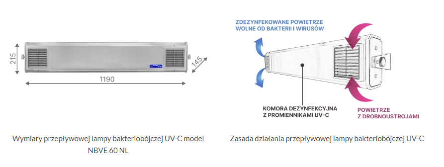 Lampa bakteriobójcza NBVE - 60 NL, przepływowa ścienno sufitowa