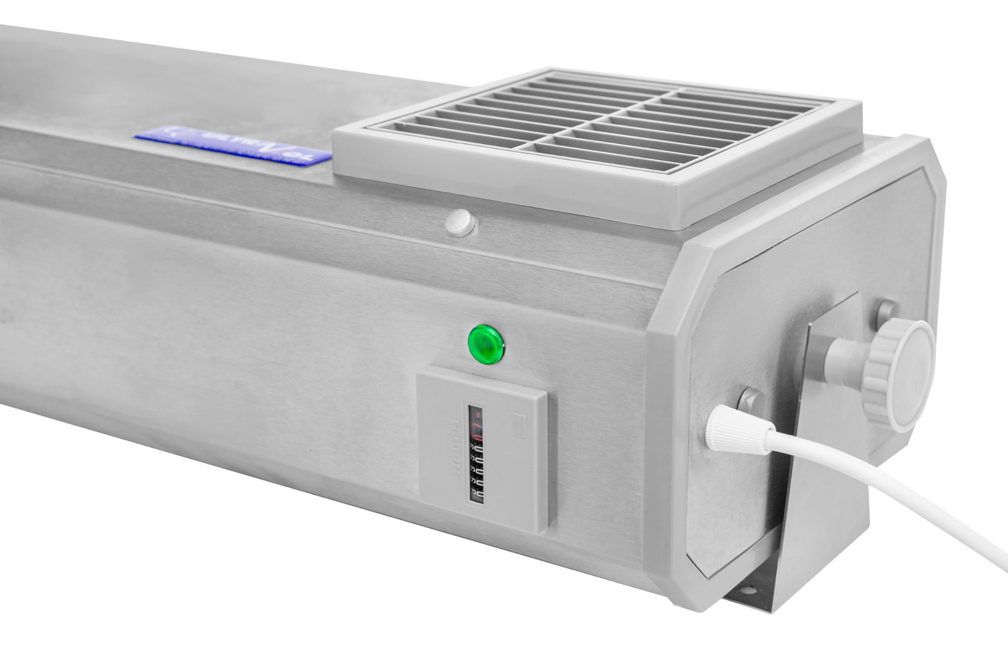 - rodzaj obudowy: blacha kwasoodporna, łatwość dezynfekcji i mycia lampy, szczelność, pełne bezpieczeństwo personelu, prostota wymiany filtrów powietrza bez użycia narzędzi,