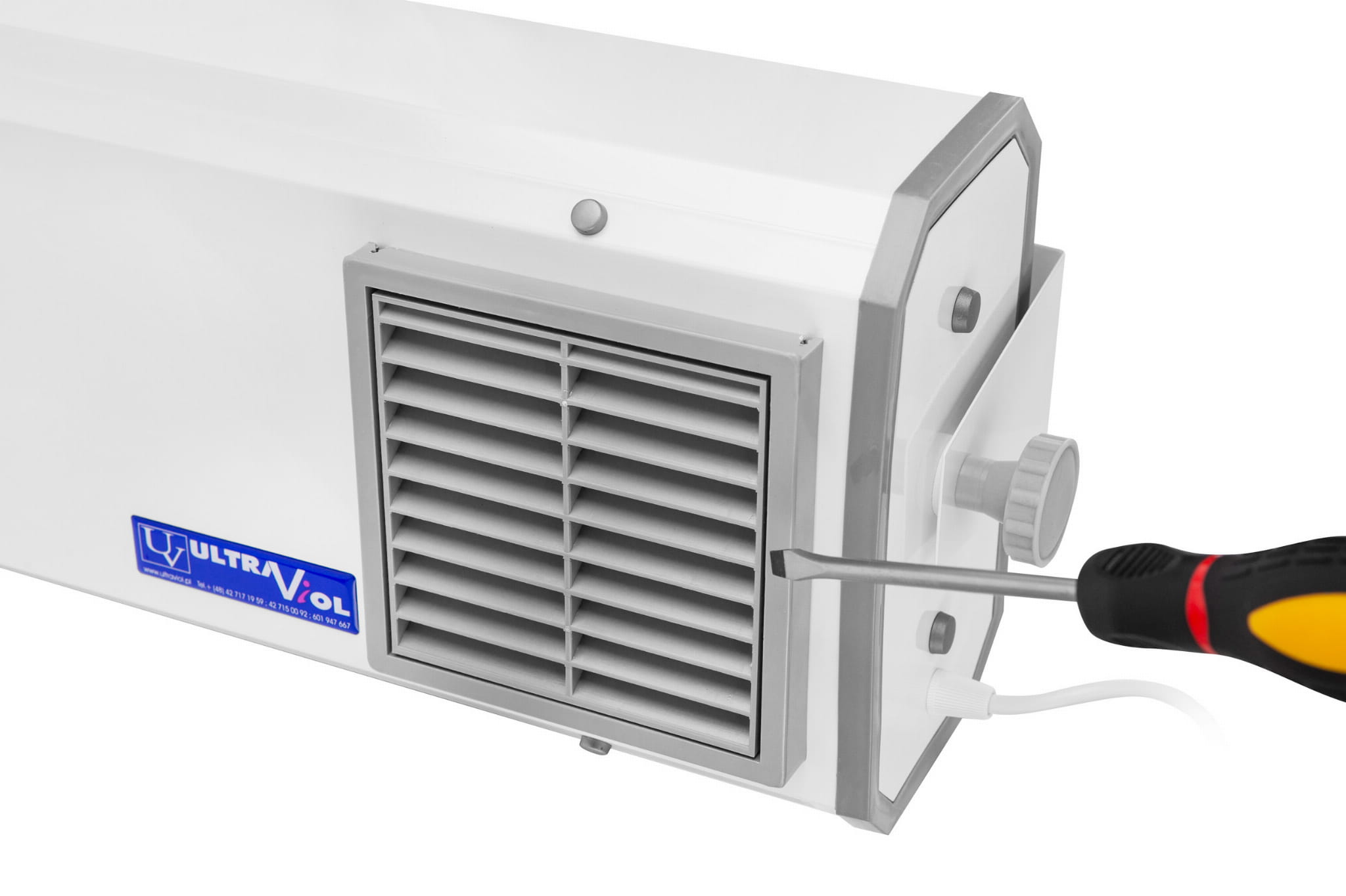- wymuszony przepływ powietrza przez komorę UV-C,