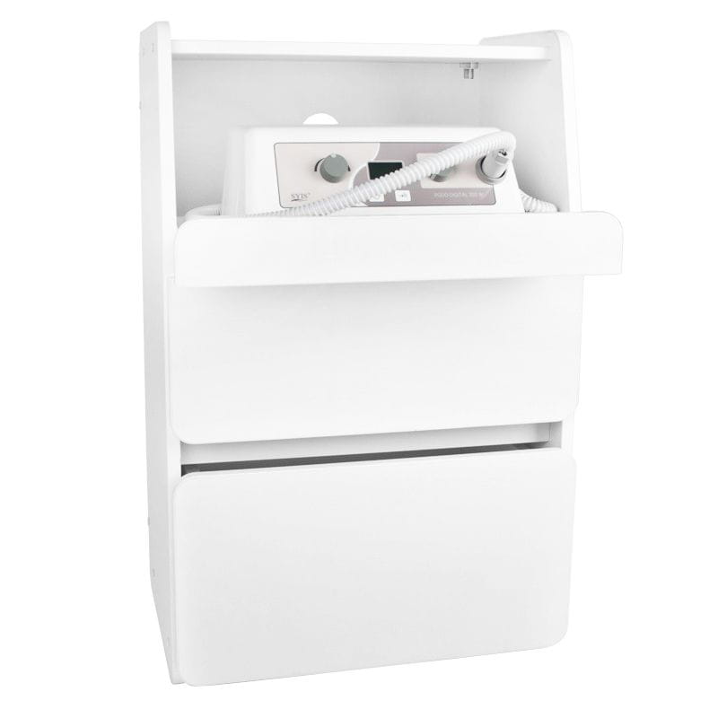 Funkjonalna szafka kosmetyczna, która przyda się w kazdym gabinecie. Jest niewielka, a przy tym dość pojemna. Dwie duże szuflady pozwolą na uporządkowanie podręcznych akcesoriów. Mebel świetnie współgra z nowocześnie urzadzonymi, jasnymi wnętrzami. Posiada wbudowany uchwyt TUBE na lampe lupę.