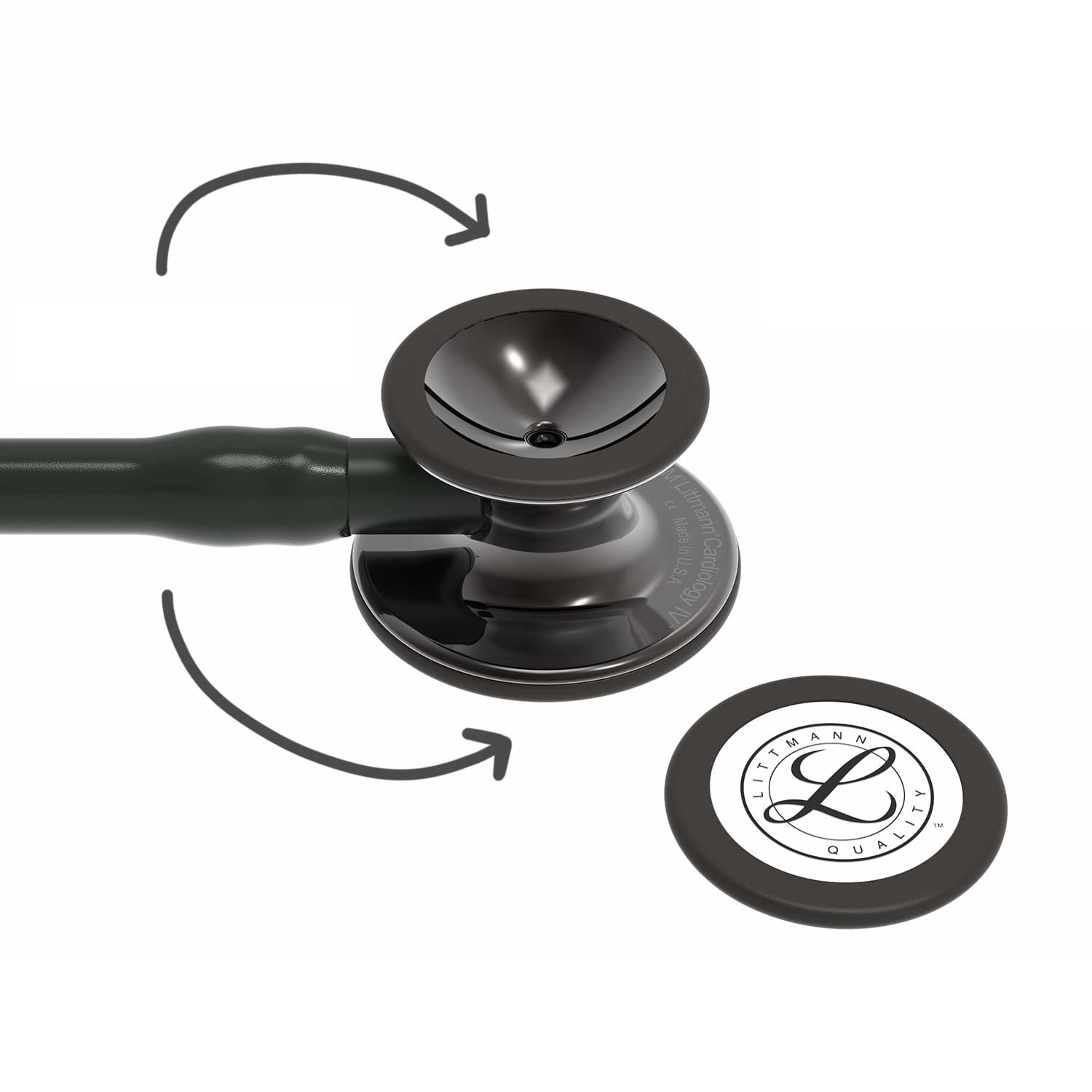 Nowy stetoskop Littmann Cardiology IV Black Finish łączy wszechstronne zastosowanie z niebywale doskonałą jakością dźwięku, zapewniając unowocześnioną akustykę wysokich częstotliwości. Stetoskop posiada wyjątkowo wytrzymały, ulepszony dren, wykonany z nowego mniej podatnego na zabrudzenia materiału, odpornego na działanie alkoholi i olejków. Stetoskop posiada podwójną głowicę: dużą i małą (pediatryczną). Mniejszą stronę głowicy tzw. pediatryczną można szybko zmienić w otwarty lejek. W tym celu należy w łatwy sposób zdjąć membranę i założyć ciepłą obwódkę. Stetoskop posiada jednoczęściową membranę dwutonową po obu stronach głowicy.
