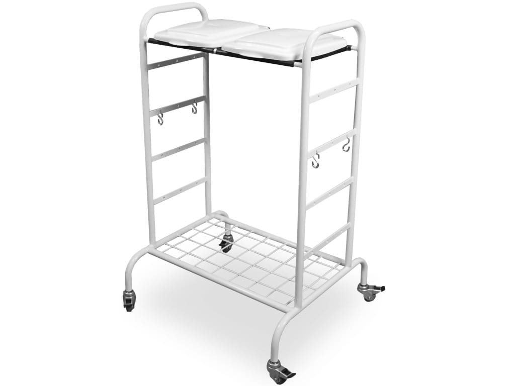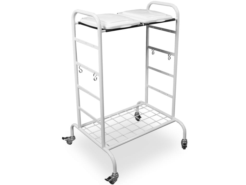 Zestaw służący jako wózek do brudnej bielizny WZ1. Przeznaczony również do mocowania worków. Jego przelotowa konstrukcja posiada metalową ramę plus kółka jezdne. Górna część to 2 plastikowe osłony do celów zamocowania worków. WZ2 to wózek sprawdzający się i mający zastosowanie głównie na oddziałach szpitalnych pozwalający na szybkie i łatwe transportowanie tego typu rzeczy.