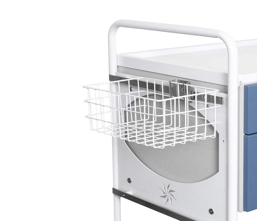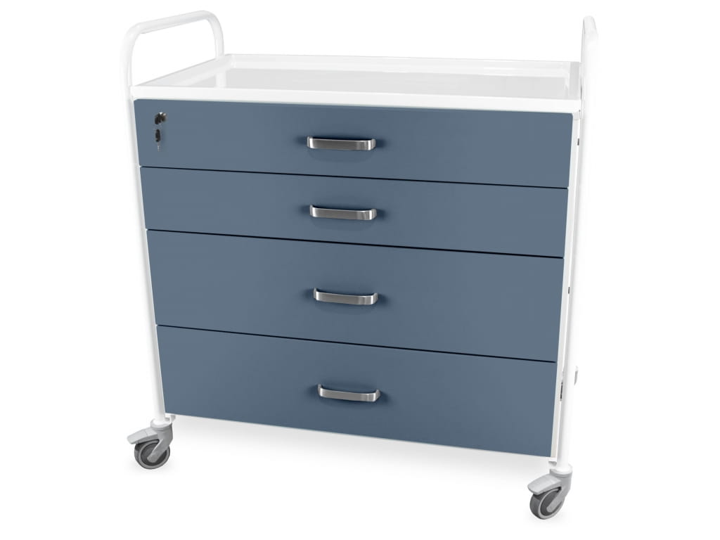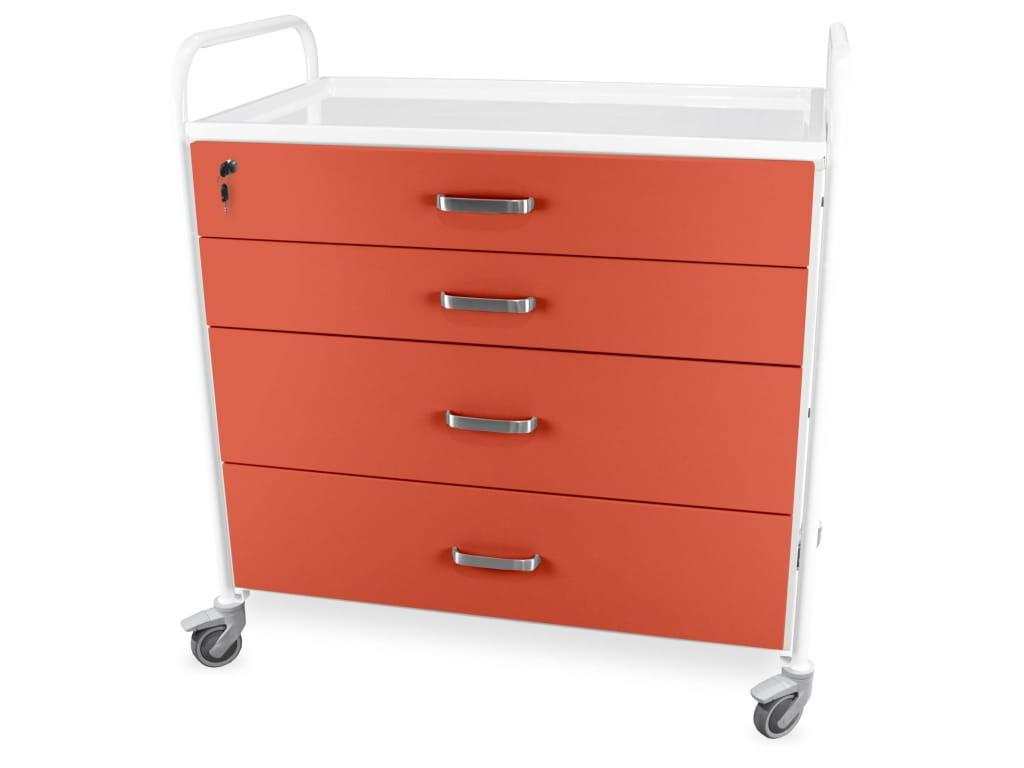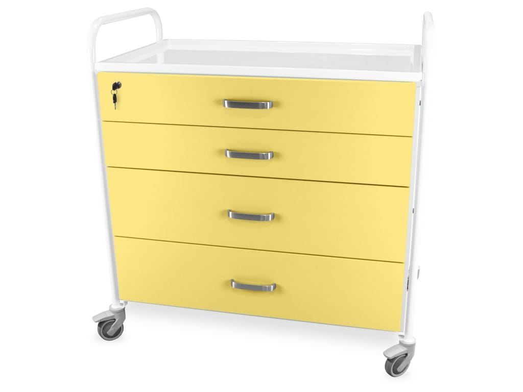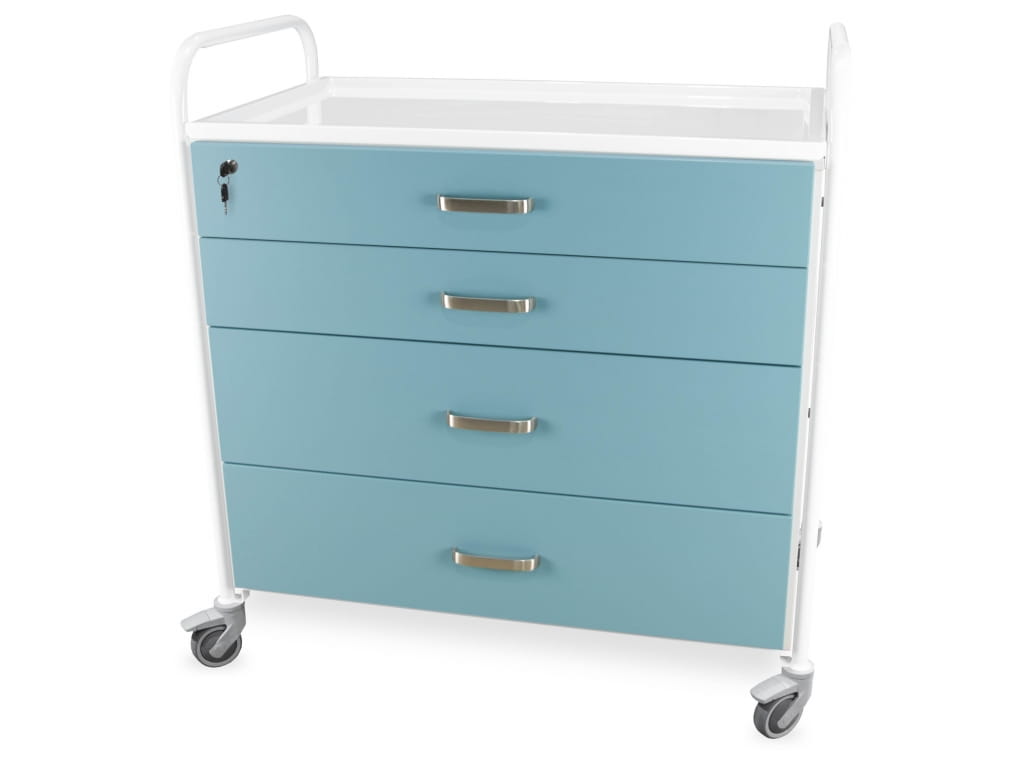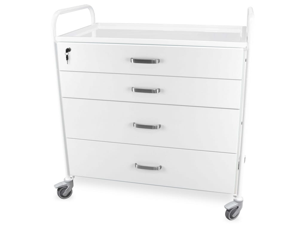 Szuflady wózka są wyłożone matą antypoślizgową. Standardowo szuflady górne posiadają zamek.
