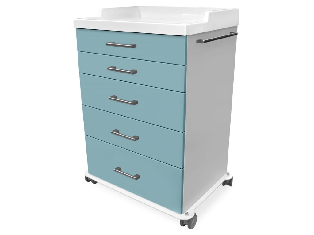Zestaw służący jako wózek wielofunkcyjny przeznaczony do bezpiecznego i wygodnego transportowania różnego rodzaju urządzeń i materiałów mających zastosowanie w oddziałach szpitalnych. Posiada tacę zaprojektowaną z laminatu poliestrowo-szklanego. Jego korpus zaś jest wykonany z płyty wiórowej, natomiast front z płyty MDF. Całość została pokryta okleiną PCV. Wózek został osadzony na stalowej podstawie wyposażonej w kółka jezdne plus hamulec.